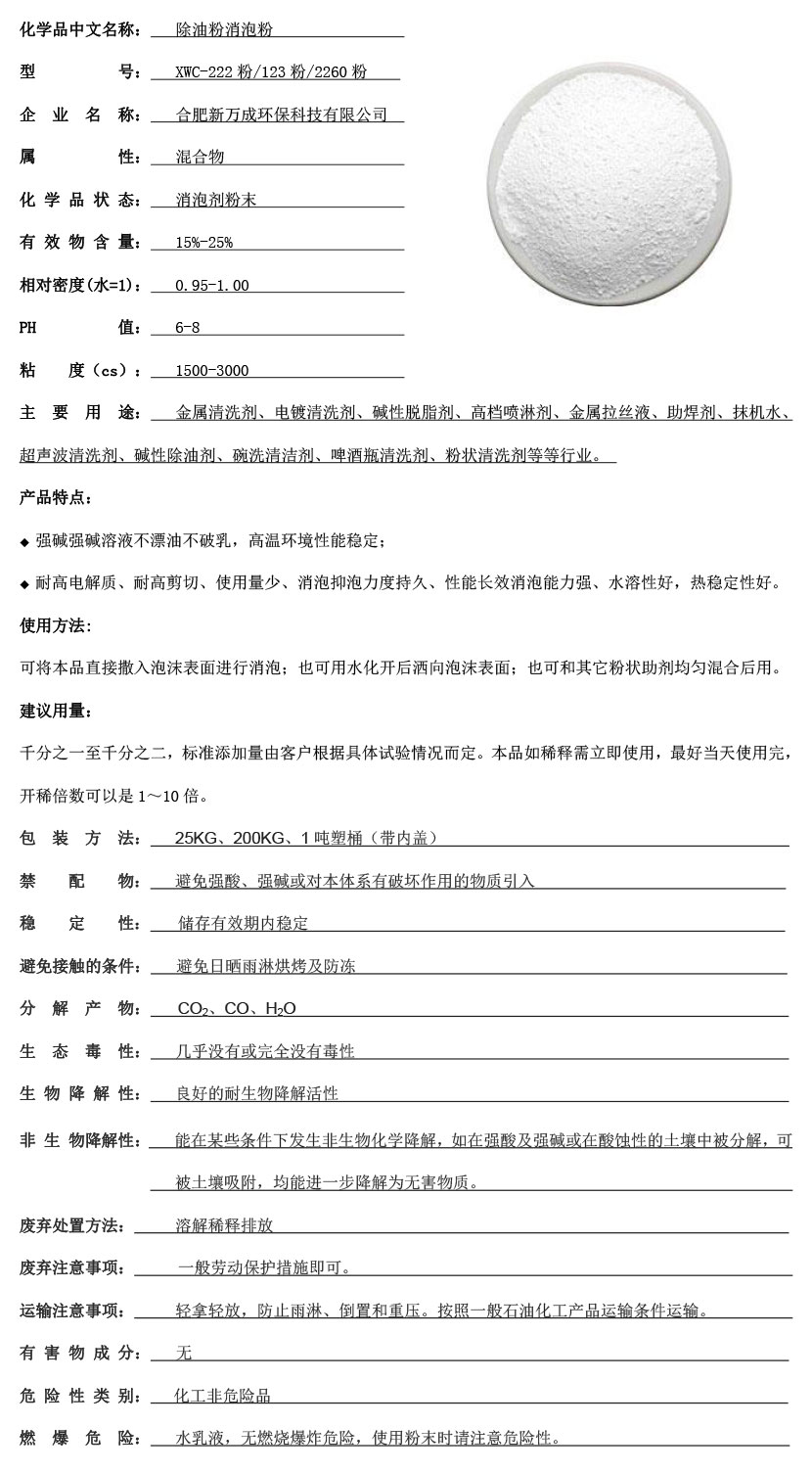 除油粉消泡粉,强碱强碱溶液不漂油不破乳,高温环境性能稳定,耐高电解质、耐高剪切、使用量少、消泡抑泡力度持久、水溶性好,热稳定性好。