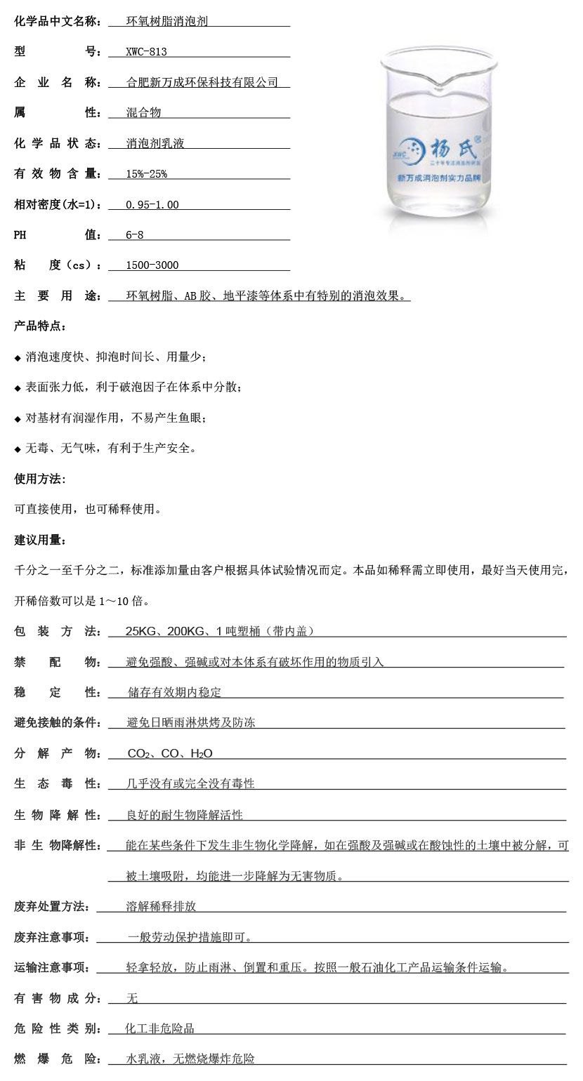 环氧树脂消泡剂,消泡速度快、抑泡时间长、用量少,表面张力低,利于破泡因子在体系中分散,对基材有润湿作用,不易产生鱼眼。